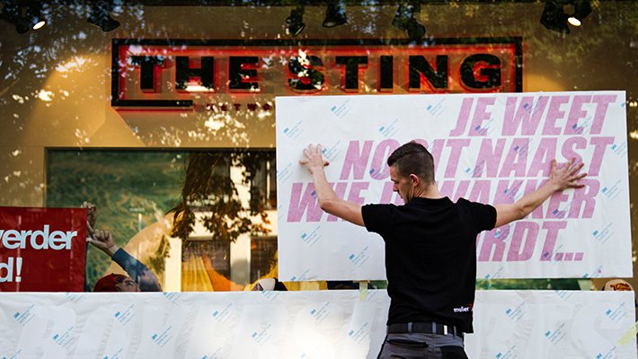 Voor The Sting Nederland produceerde M2 Printing 375 kartonnen visuals. De verschillende displays werden per winkel verpakt en zijn eenvoudig door het winkelpersoneel op te zetten.